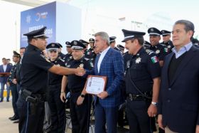 El gobernador Tony Gali y el Comisionado General de la Policía Federal, Manelich Castilla, entregaron reconocimientos a miembros de la Coordinación Estatal de la Policía Federal de Puebla.